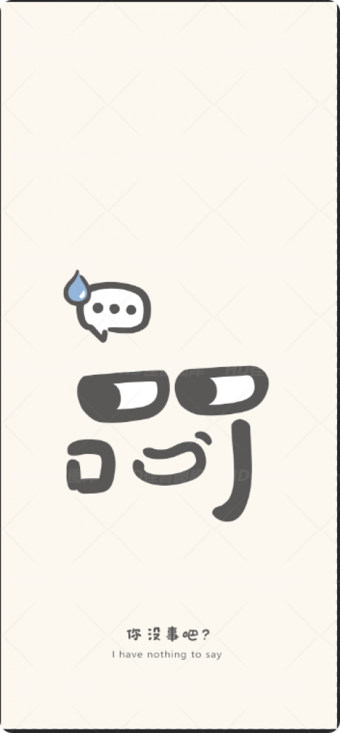 这幅设计采用极简风格,以米色为背景,用抽象线条构成 “哥” 字主体,上方泪滴气泡与下方中英文 “你没事吧?I have nothing to say” 形成呼应,通过留白与符号化表达传递无奈又带点调侃的情绪张力。